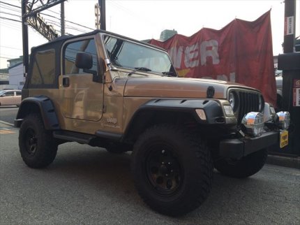 希少色ゴールドのカスタムジープ!高年式4AT! 内外装・機関良好車・リフトUP・社外オーバーフェンダー・社外AW・新品幌装着してます。 社外スピーカー他社外パーツ多数! 実車拝見して頂ければ即決です。